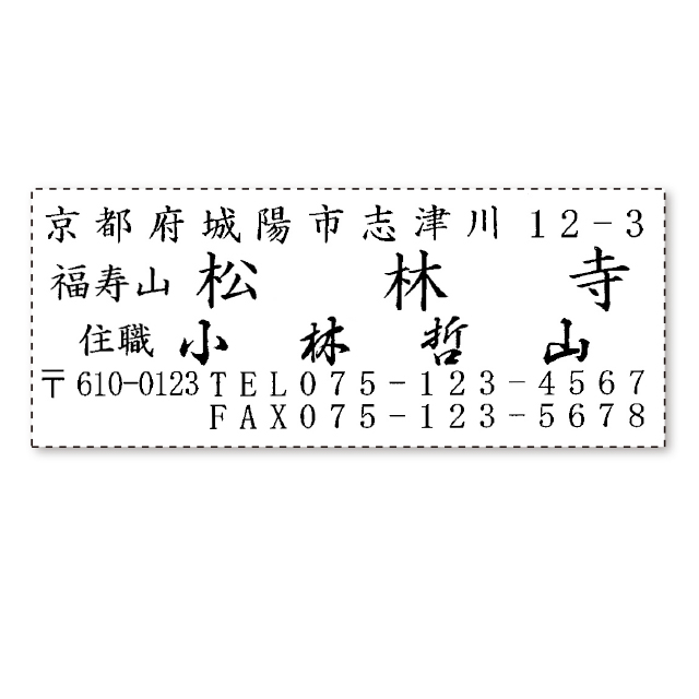 甲陽印刻所 > 商品 > 寺院向け > [黒ゴム印]耐油性【住所・氏名】5行ワクなし [黒ゴム印]耐油性【住所・氏名】5行ワクなし [黒ゴム印]耐油性【住所・氏名】5行ワクなし (g-5n) 定価(税込)¥5,500販売価格(税込)¥5,500在庫状態 : 在庫有りご希望の書体(楷書・行書・明書・隷書)をご記入ください。指定のない場合は楷書となります。 文言をご指示ください。如何様にも致します。 オプションを指定してください。文字方向 タテ ヨコ 書体 楷書 行書 明朝 隷書 彫刻する文字(1行目) 彫刻する文字(2行目) 彫刻する文字(3行目) 彫刻する文字(4行目) 彫刻する文字(5行目) 数量本